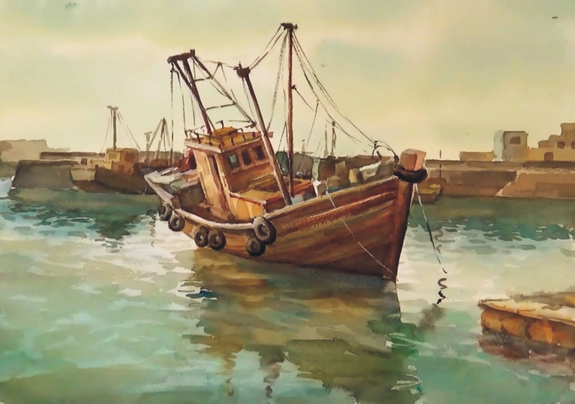 ------------------------------------23.Boot in sea water color painting