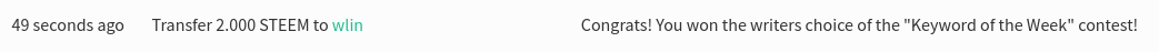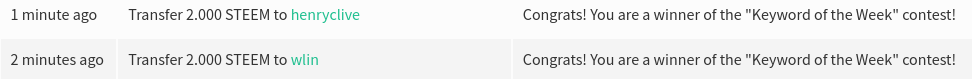 Ihr beide seid für dieses Mal die glücklichen Empfänger von jeweils 2 STEEM, die ich sofort im Anschluß auszahlen werde. Den Screenshot der Transaktionen findet Ihr im Kommentarbereich. Herzlichen Glückwunsch!