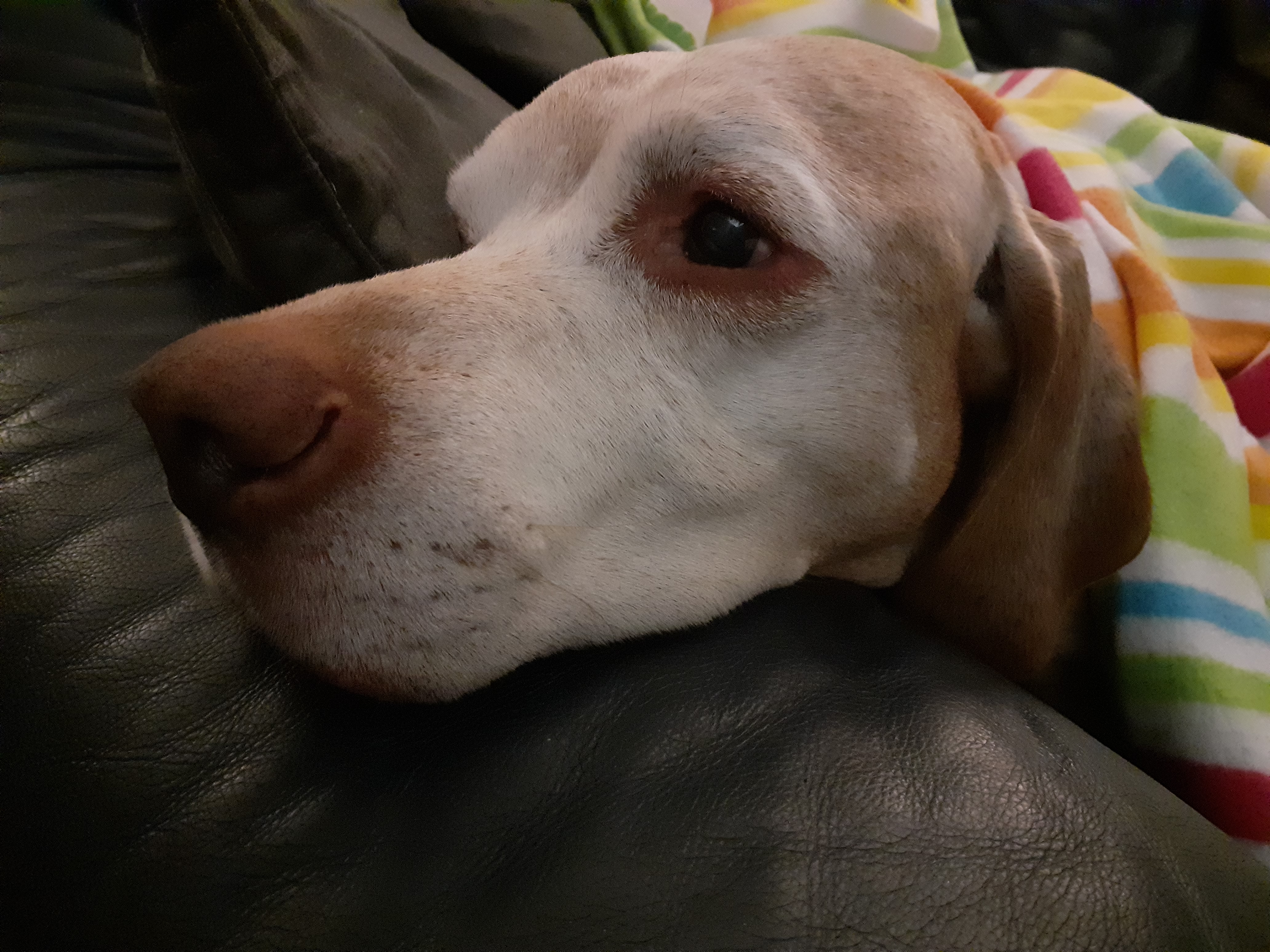 Where is my mistress, anyway? Is she in bed too? Can't get up? Great! Really great. Poor doggy me.