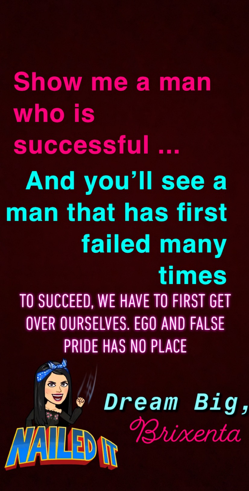 We learn by trying things. If we don’t try things, we can never succeed. So, failure is actually a big part of success. When we fail, those that try harder, come out on the other side with value to offer. Success is risky, but the reward is worth it!
