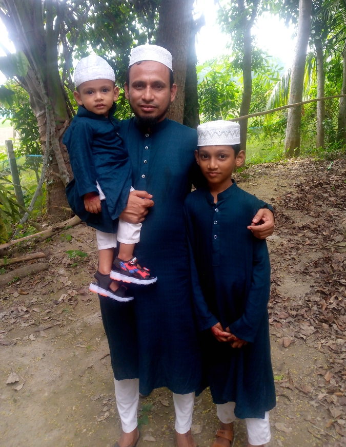 এরপর যথারীতি টেইলার এর কাছ নিয়ে গেলাম টেইলার কাপড় মেপে দেখে বললো যে আমার নিজের পাঞ্জাবী, বড় ছেলে নিহানের পাঞ্জাবী এবং ছোট ছেলে আয়ানের পাঞ্জাবী এবং পাজামা দুটোই হবে। আমি বললাম যেভাবে ভালো হয় সেটাই করেন। এরপর প্রায় ১৫ দিন পরে রোজার ঈদের তিনদিন আগে আমরা আমাদের পাঞ্জাবী ডেলিভারি পাই। এবং ঈদের দিনে পরিধান করে আমরা কিছু ছবি তুলে আপনাদের মাঝে শেয়ার করলাম। অবশ্য কাপড় সময় যদি আমি আমার বাংলা ব্লগে এক্টিভ থাকতাম তাহলে হয়তো আরও বিস্তারিত আপনাদের মাঝে শেয়ার করতাম।
