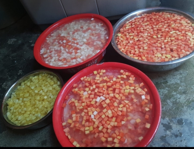 Minuman dingin dan manis ini terbuat dari buah-buahan yang dipotong dadu, seperti , melon , nanas , pepaya, dan kolang kaling, kemudian dicampur dengan es serut atau es batu, dan dimaniskan dengan gula cair atau sirup . Jenis buah yang digunakan dalam hidangan penutup ini mungkin berbeda, beberapa mungkin menambahkan buah yang tersedia seperti mangga , semangka atau lengkeng sesuai selera masing-masing.