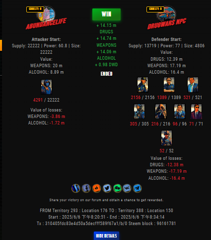 Check my latest fight ! abundancelife vs The Govermentabundancelife (74)in #drugwars-fight • 11 months ago #gaming #fight #dw