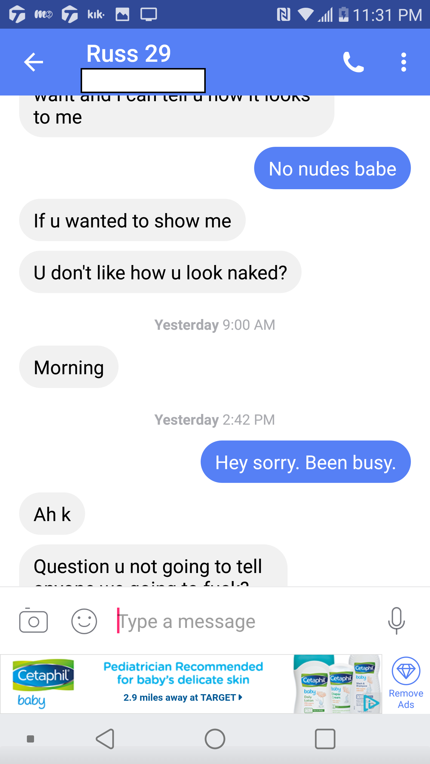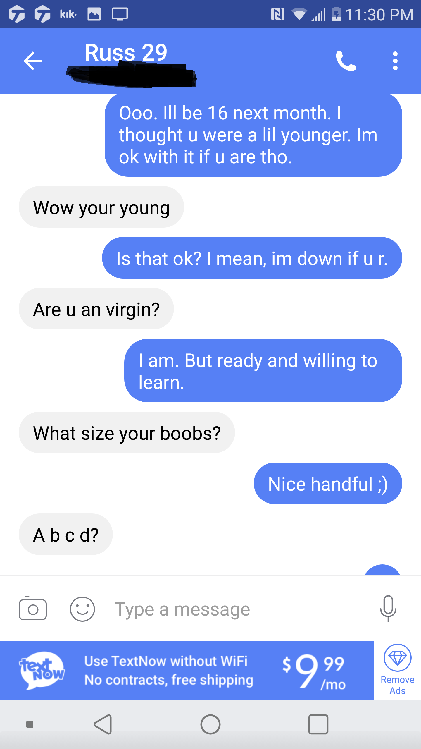 This is Russell Hancock from Sprint City, TN, 29 years old. He thought he was chatting with a 15 year old virgin but got Dirty South Chad instead! This man was very graphic about what he wanted and when he was told about her 14 year old friend, he wanted to eventually have both of them for a threesome. He sent pictures of his privates, asked vulgar questions, and LOVED that she was a virgin.
