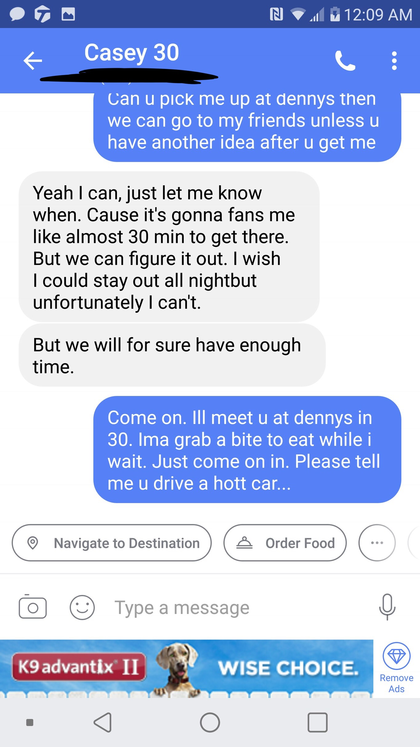 This is the getaway of Casey Woody, age 30. We previously had this man a month or 2 back but he couldn't meet up because his girlfriend took the keys to the car they shared at the time. He mentioned right before the meet that someone had been busted for the same thing at the meeting spot a while back. We believe he knew who Chad was and the minute he saw him and ran. We tried to make contact to give him a chance to tell his side of the story but he never would answer. He thought he was meeting a 15 year old but got Dirty South Chad instead!