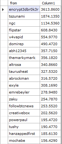 I'll try to go in order.. Games and some fun is very welcome at present! Lots of serious talk and it's easy to forget this good reason to be here. @drugwars has exploded for sure, the top spenders so far: