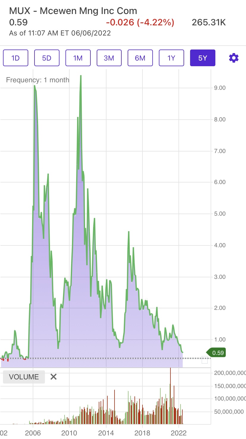 I believe MUX is safe and even if I’m wrong on the direction of metals after the Fed reverses I don’t see it going under. I’m willing to hold for multiple years. My average buy price is close to where we are and sub .75 cents I’ll keep adding.