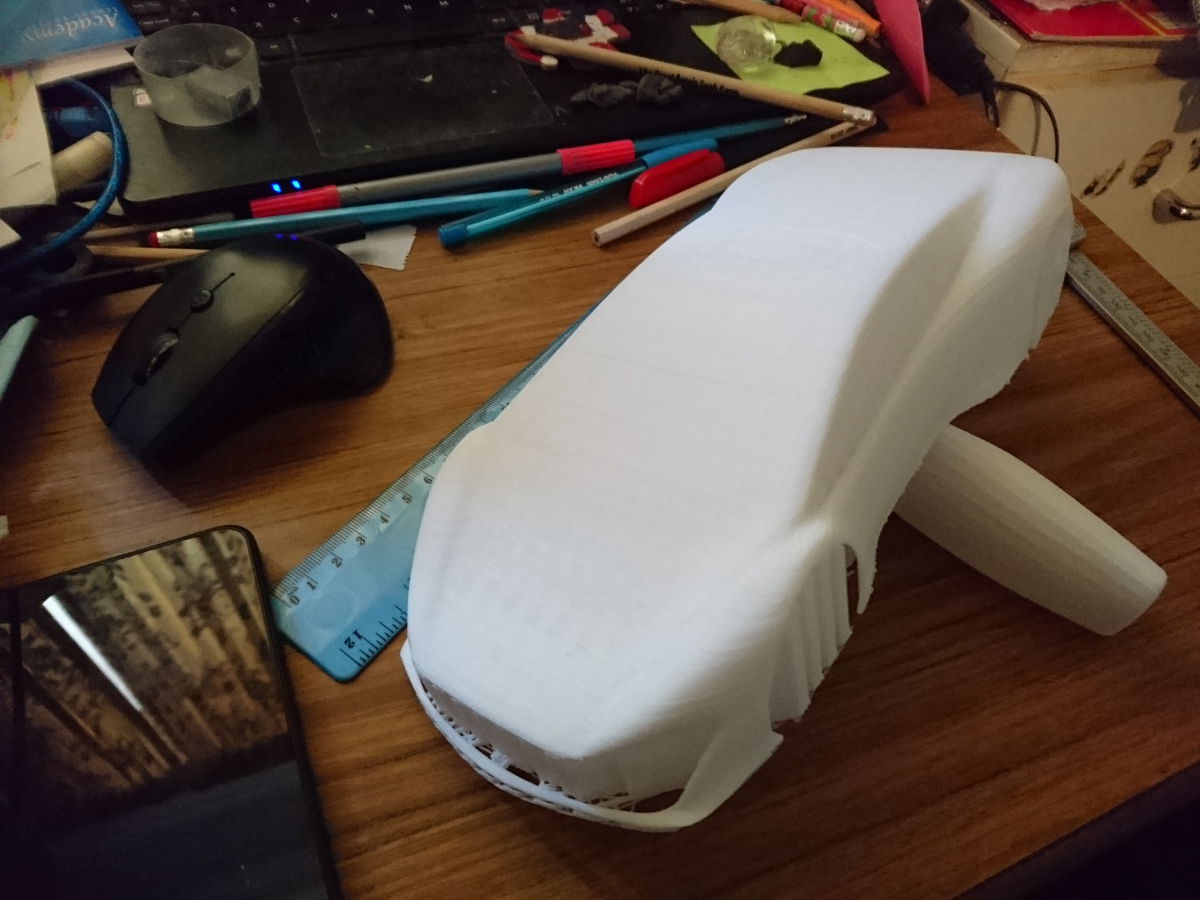 The body is still in the condition it was when it came it off the printer and a lot of what you can see is the support material the printing process produces when it makes the object. It's like a scaffold of sorts so the unsopported parts of the object have some something to be printed on.