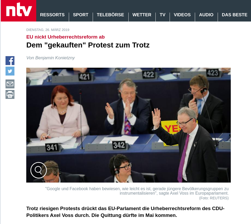 "Google und Facebook haben bewiesen, wie leicht es ist, gerade jüngere Bevölkerungsgruppen zu instrumentalisieren", sagte Axel Voss im Europaparlament.