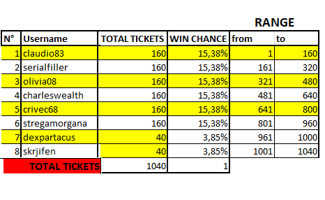 Voglio ringraziare tutti i partecipanti da questa lotteria e le precedenti: