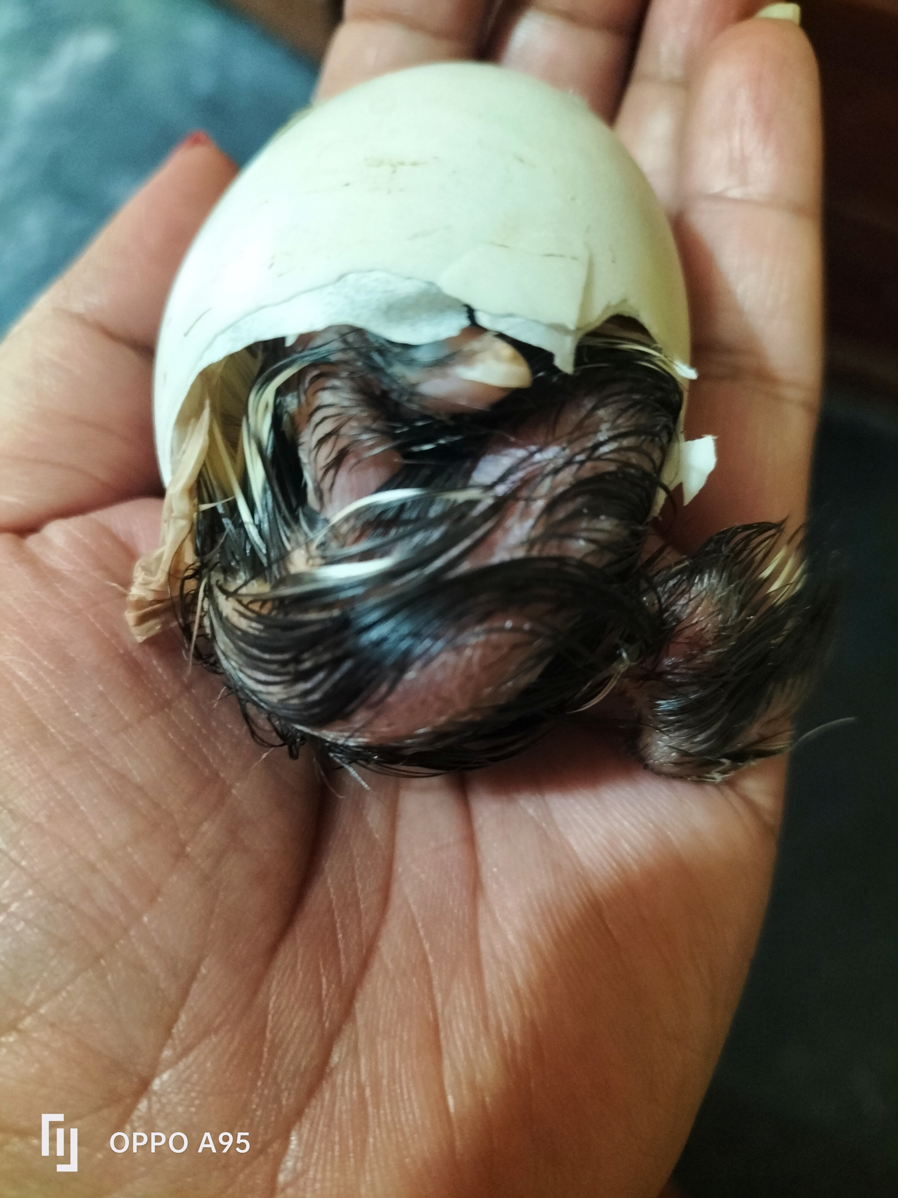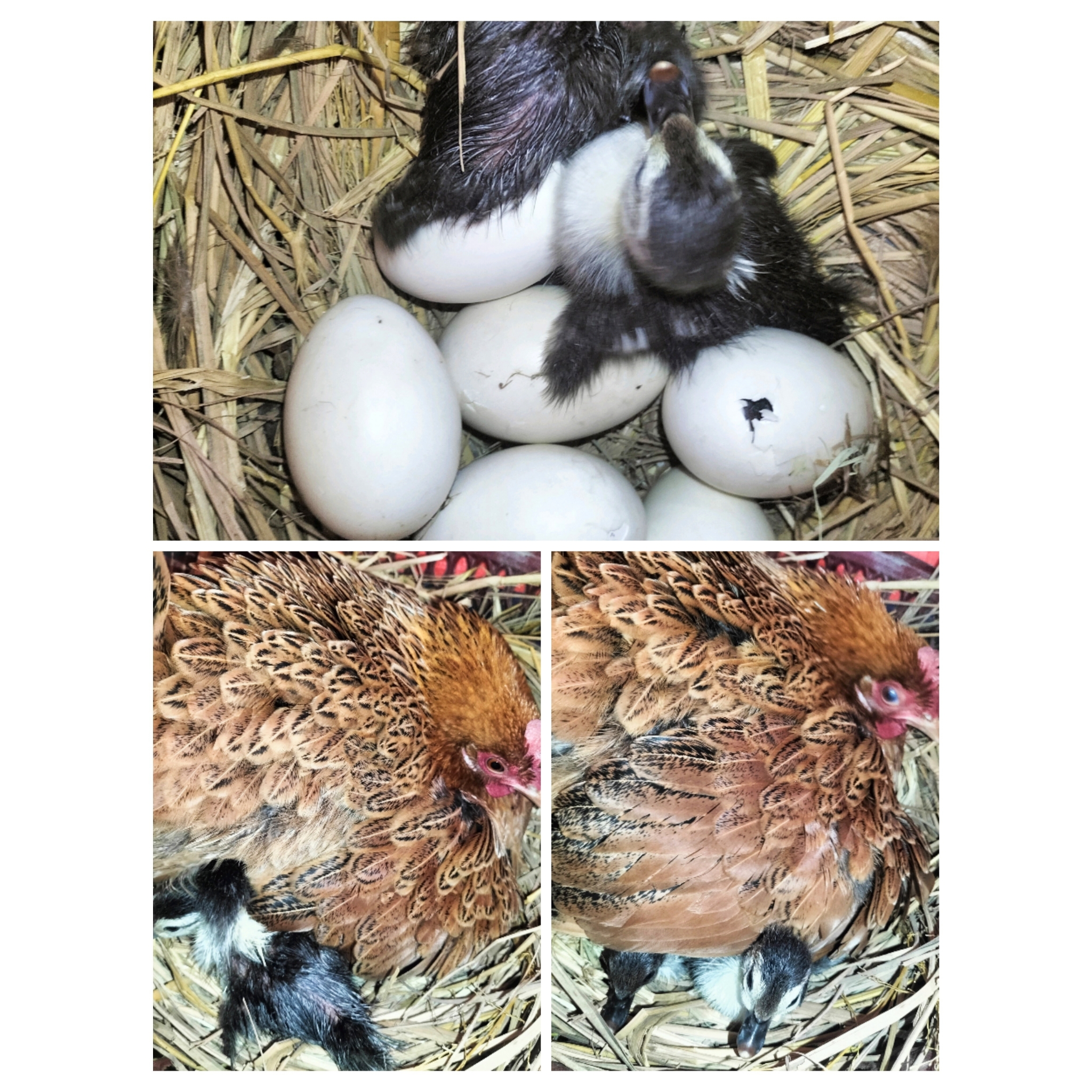 লক্ষ্য করুন ফটোগ্রাফিতে যে ডিম ভেঙ্গে ফেলেছে হাঁসের বাচ্চাদের ঠোঁটের সামনের এবং ডিম থেকে বাচ্চা বের হয়ে এসেছে। বারোটি ডিম তা দেওয়া হয়েছিল কিন্তু বাচ্চা বেরিয়েছে মাত্র ছয়টি।