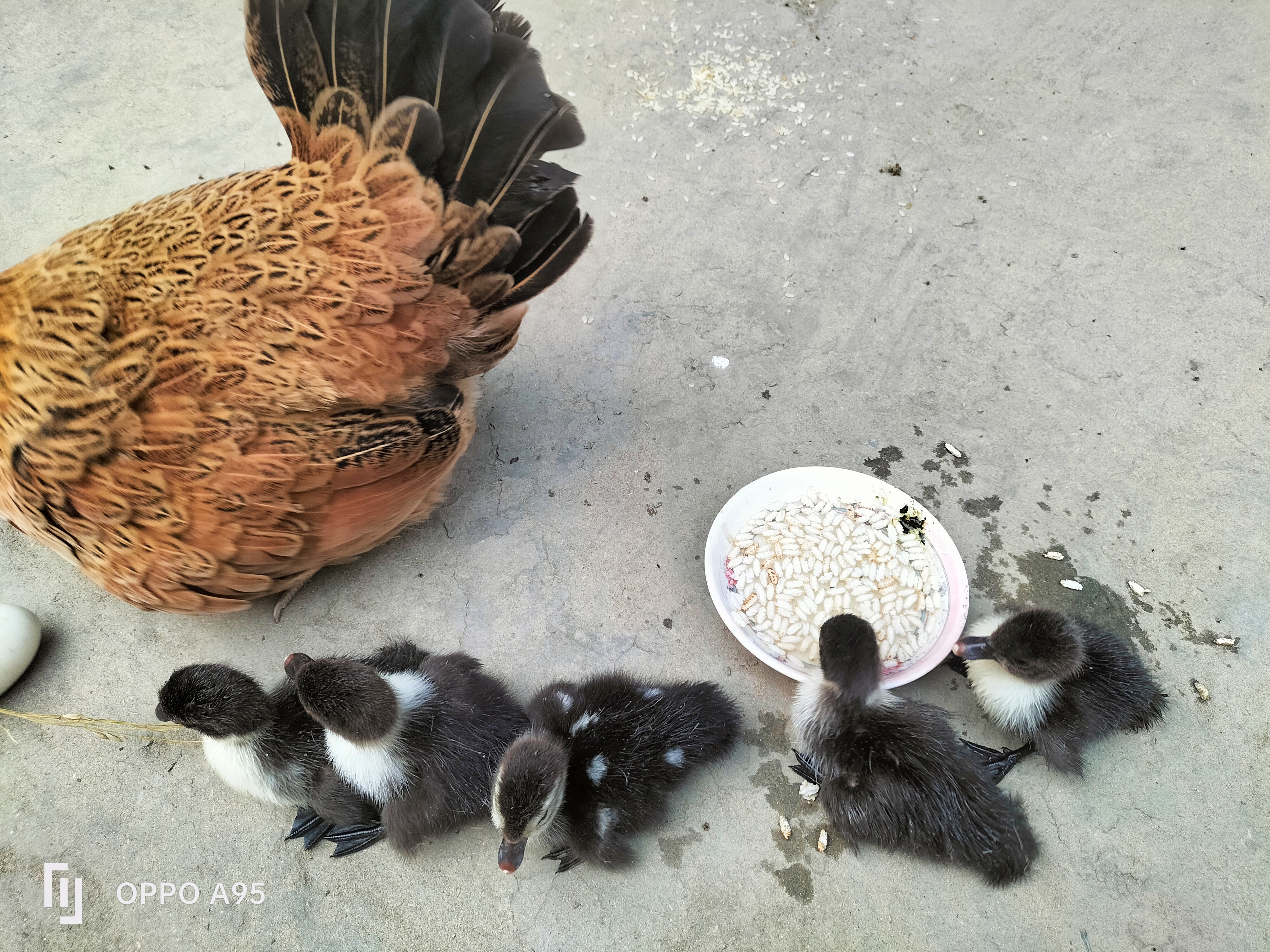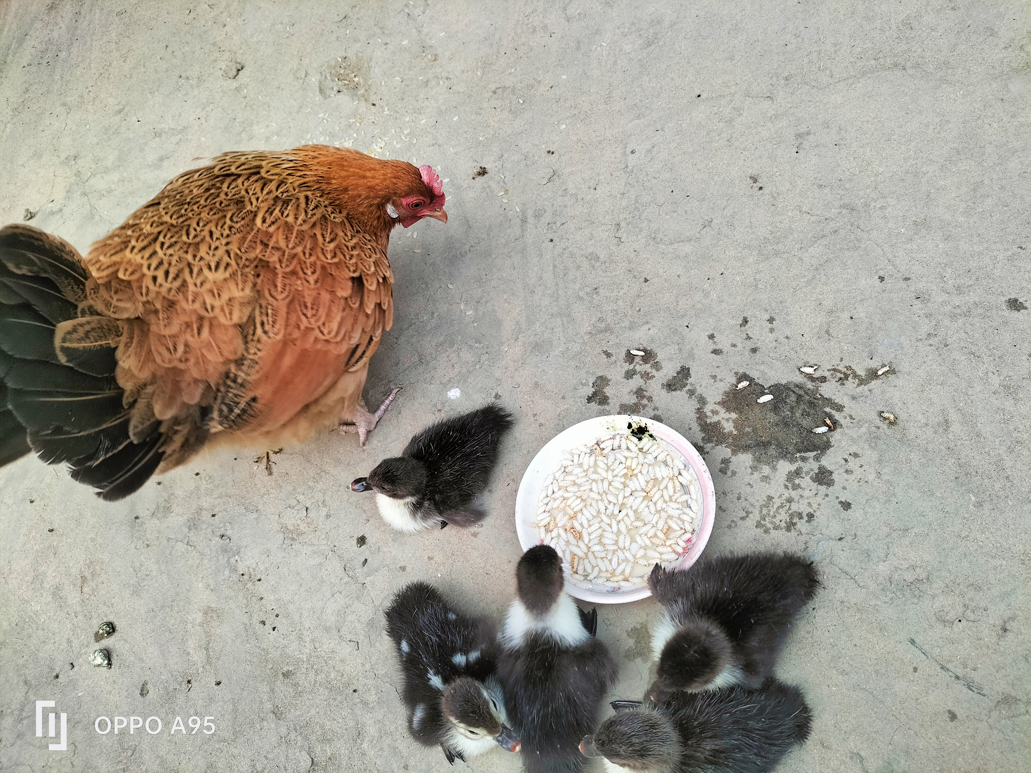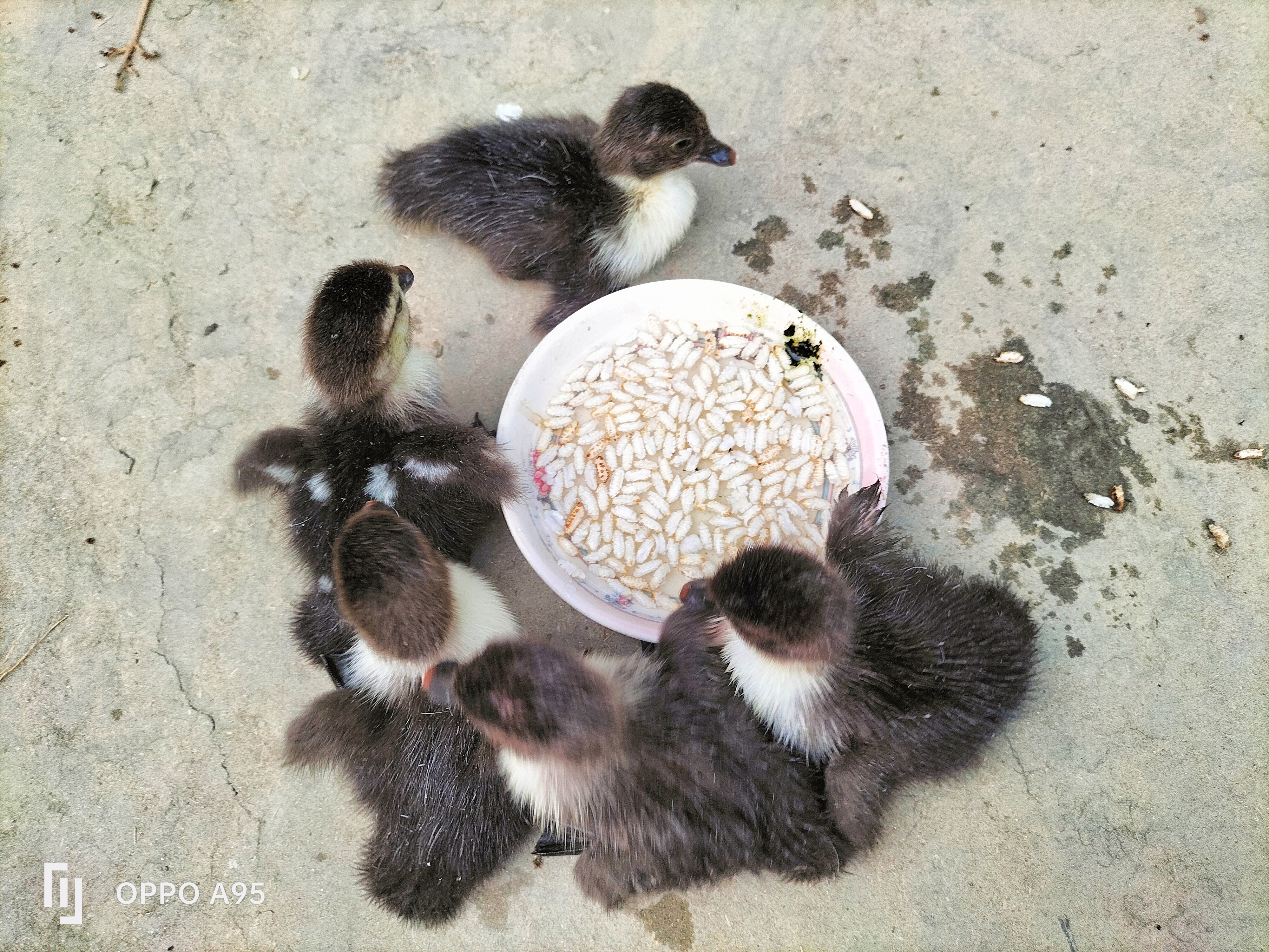 বাচ্চা গুলো বের হয়েছে এবং তাদের কে খাওয়ার জন্য খৈ দেয়া হয়েছে। যেহেতু অনেক ছোট বাচ্চা তাই তারা শক্ত খাবার খেতে পারবে না তাই খৈ দেয়া হয়েছে এবং বাচ্চারা মজা করে খাচ্ছে তার মায়ের সাথে।