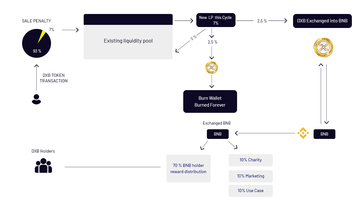 DXB is the utility token that will power the DXB pay ecosystem for all future DeFi products. The DXB token is a specialized cryptocurrency with a plan to encompass multiple technologies like DeFi, merchant payment channels, incentives, and charity.