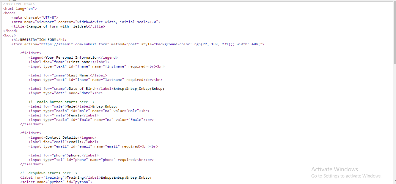 Take a screenshot of your completed form in the browser. Share the screenshot and HTML source code on Steemit in your entry post.