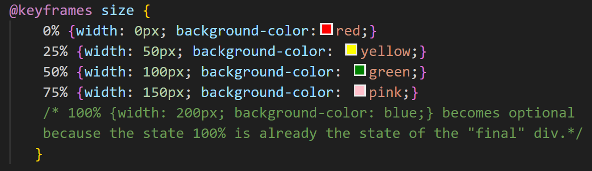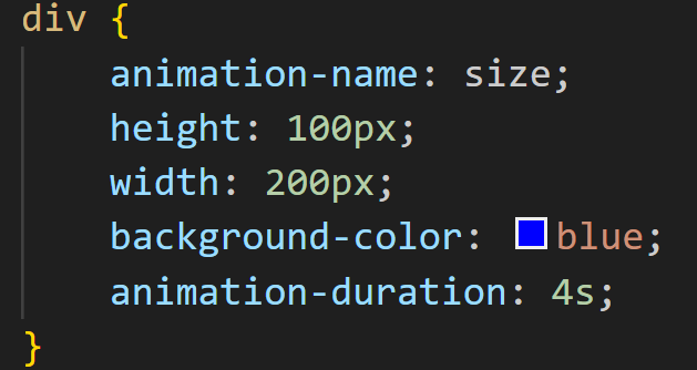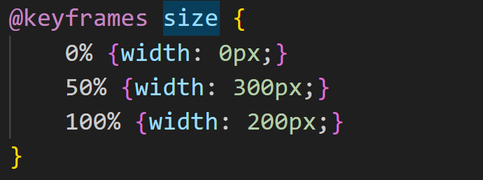 We use the @keyframes rule and name the animation size.