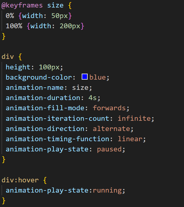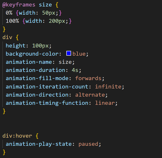 Here is the code for an example where we pause the animation by hovering over the element: