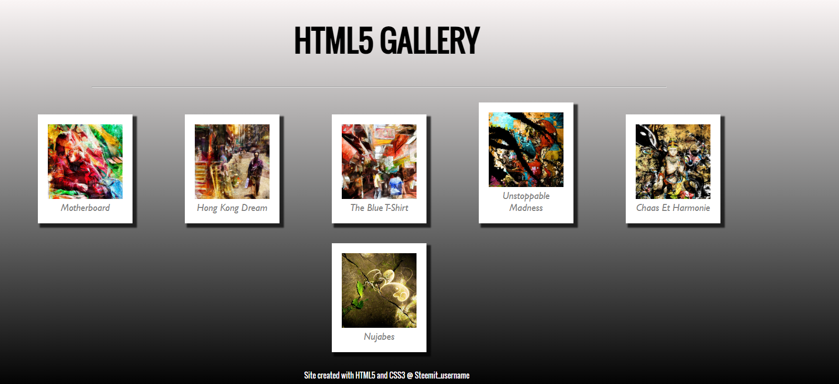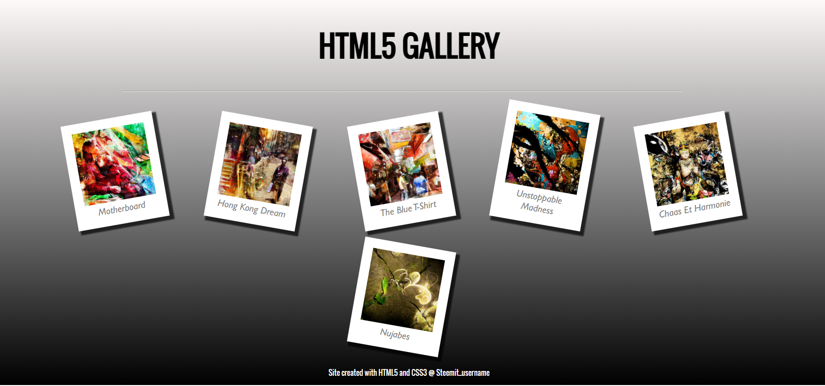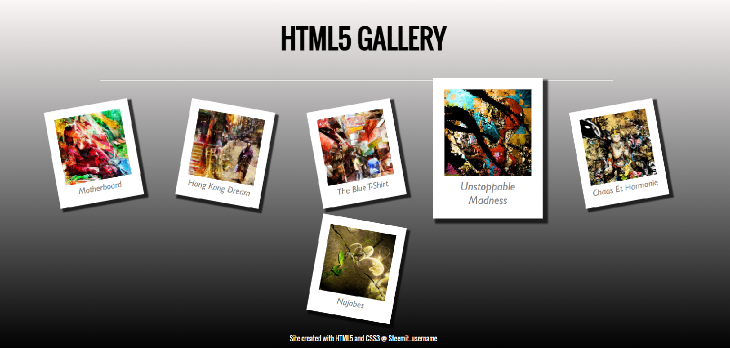In this exercise, you should create an image gallery in HTML5 and CSS3. In the archive provided, you have six images that you will have to place on the same page.