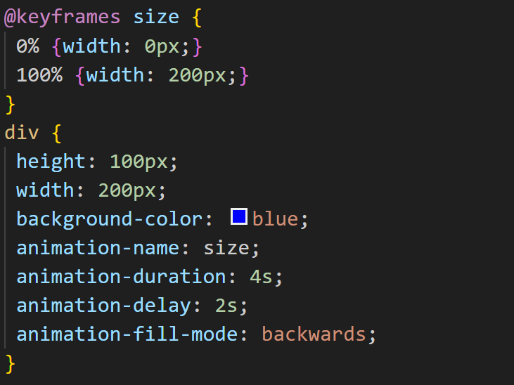In the examples above, the animation starts as soon as it loads, which is not always desirable. We have the animation-delay property to delay the start for the desired duration.