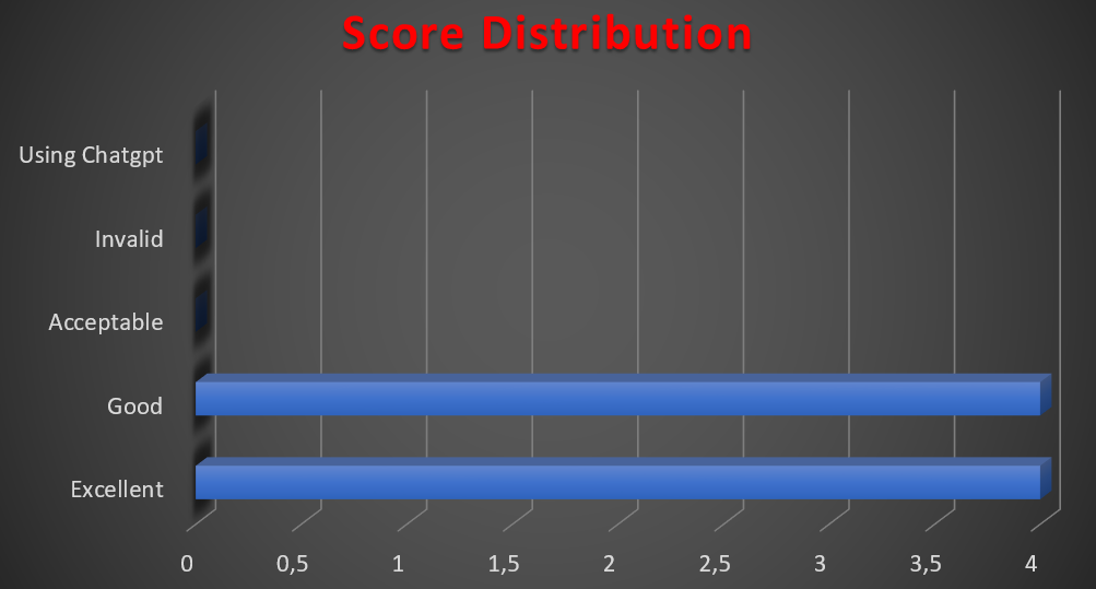 A significant number of entries, 50%, were rated as excellent quality, and the remaining 50% were rated as good quality. This demonstrates the participants’ in-depth understanding and analytical skills regarding the topic.