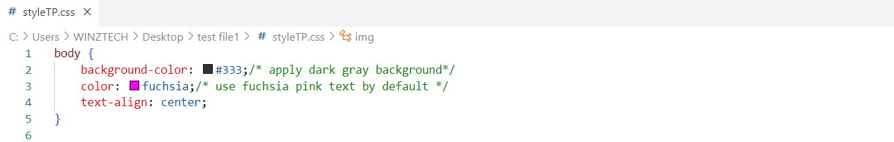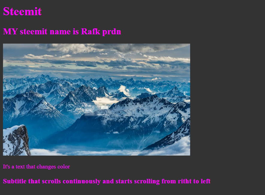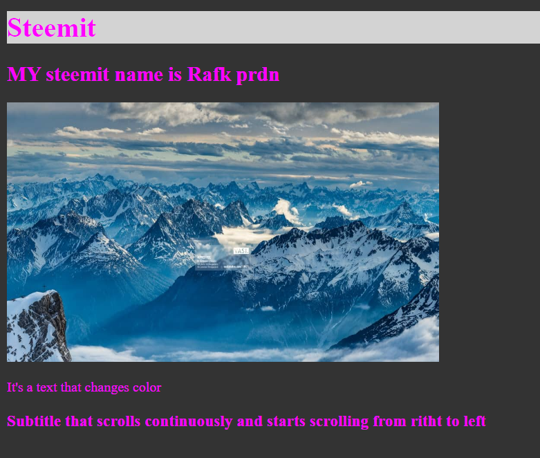 After creating the CSS file, I then proceed too answer as requested. First of all by applying a dark screen to my entire document with a fuchsia pink text color and then center all titles.