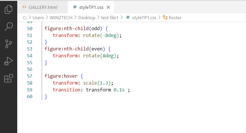 However the exercise 2 is perfectly explained in the output video. Your code is well documented as well. The gallery images are hovering and turning to straight point on mouse hover. I love this animation. Stay Blessed :)
