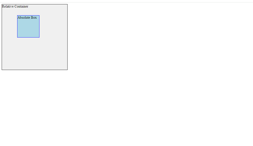• Absolute: Elements are positioned relative to the nearest positioned ancestor (an ancestor with a position other than static). If no such ancestor exists, it is positioned relative to the initial containing block.As the example code I have shared my .absolute-box element is positioned 10px from the top and 20px from the right of its closest positioned ancestor (the .container element). It does not affect the position of other elements.