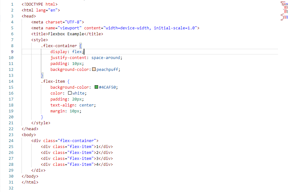 The .flex-container has padding: 10px; to create space around its edges and a light gray background color. Each .flex-item has a green background, white text, padding for spacing inside, and margin to separate them from each other. This layout is simpler than grid and works well for arranging items in a single row with consistent spacing.