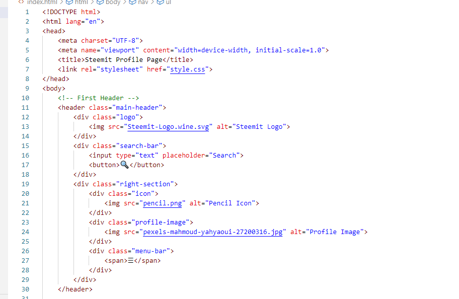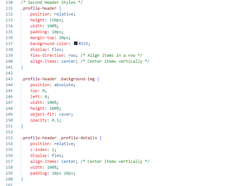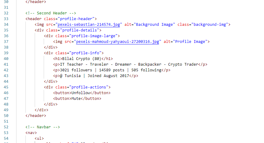 I experimented with different colors and added hover effects to enhance interactivity. The design includes a main header with a logo and search bar, a profile section with details and action buttons, and a navigation bar beneath the profile header.