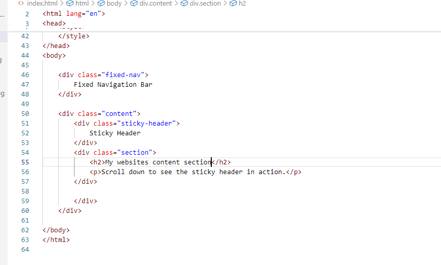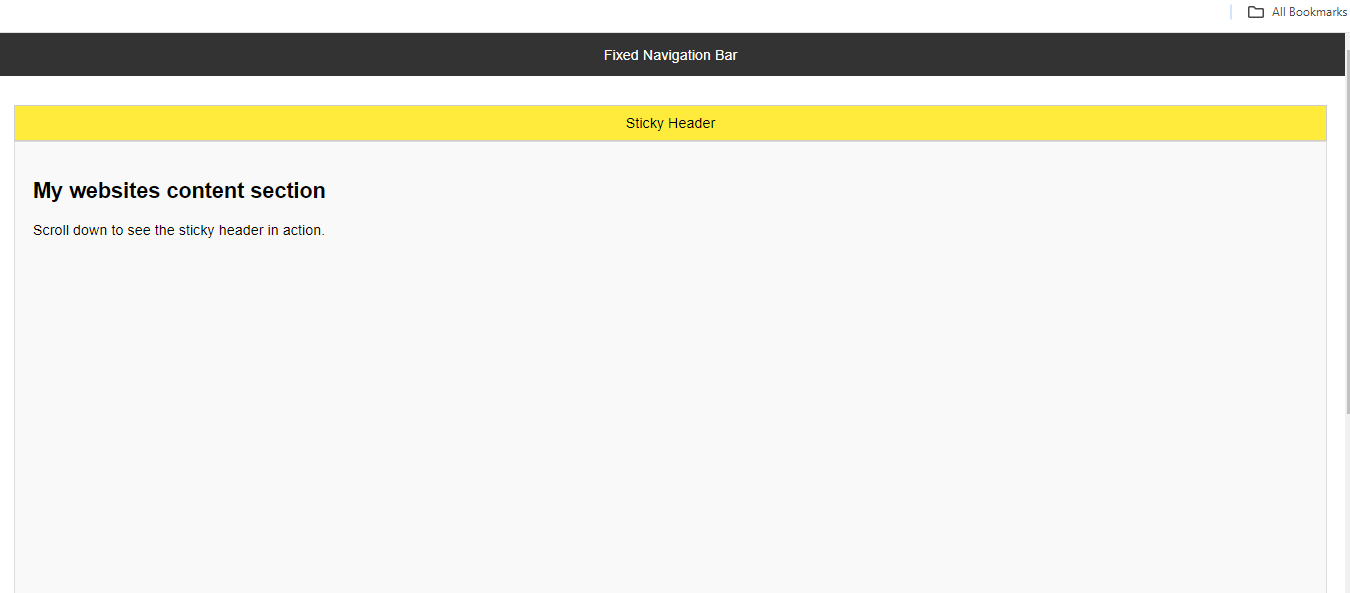 • Fixed: Elements are positioned relative to the viewport, which means they stay in the same place even when the page is scrolled.In this example, the .fixed-nav class uses position: fixed; to ensure that the navigation bar remains fixed at the top of the viewport.