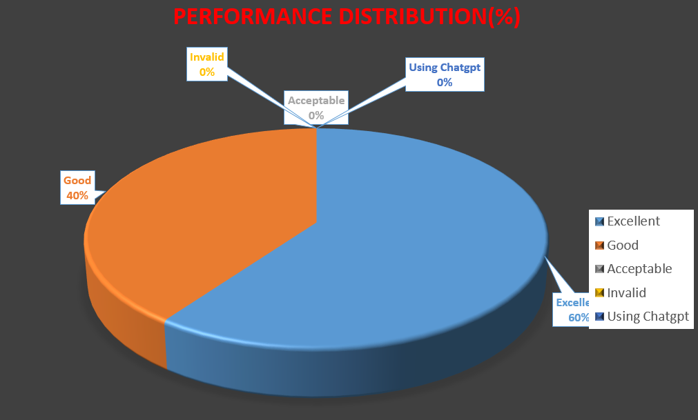 A significant number of entries, 60%, were rated as excellent quality, and the remaining 40% were rated as good quality. This demonstrates the participants’ in-depth understanding and analytical skills regarding the topic.