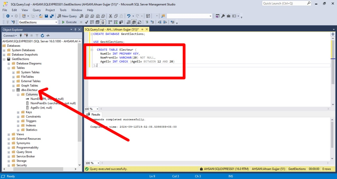 First of all, I created the Electeur Table: