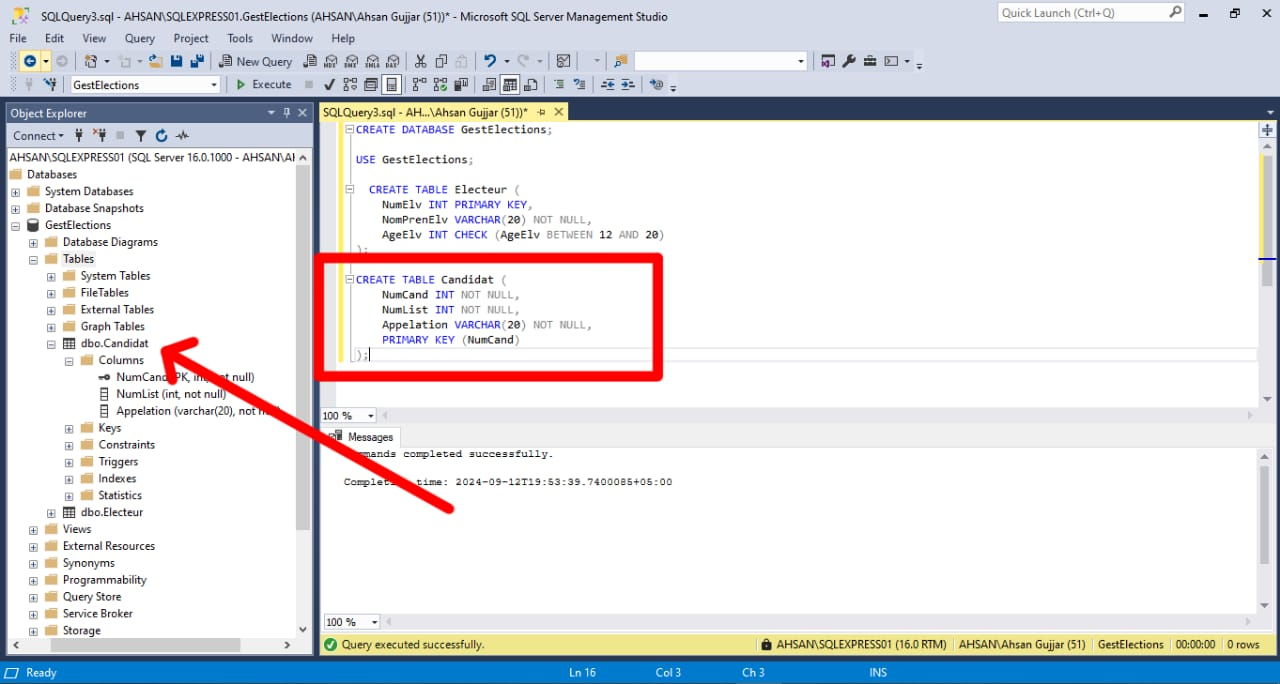 Create the various tables in the "GestElections" database.