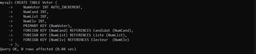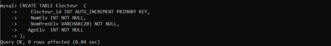 Create table Electeur