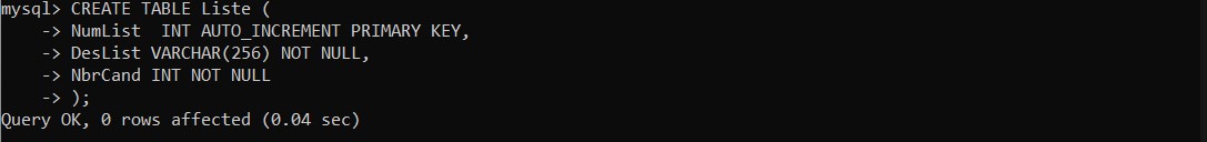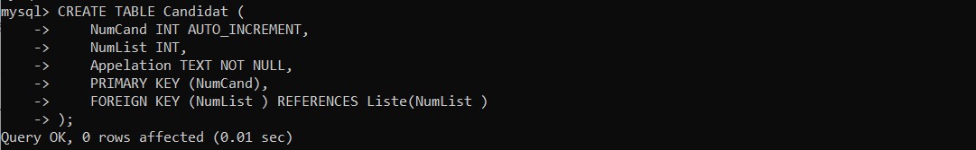 Create table Candidat