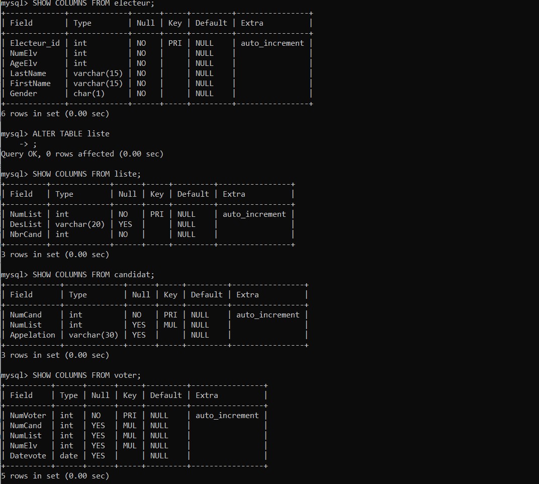 • Create the various tables in the "GestElections" database.