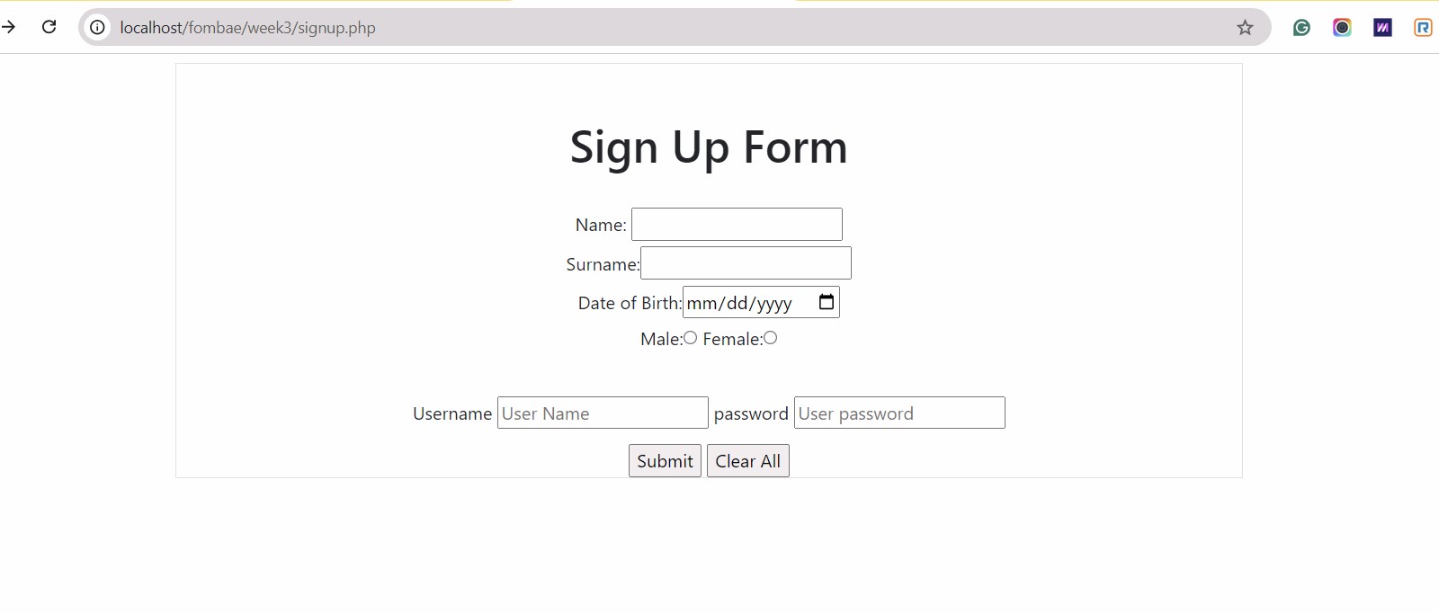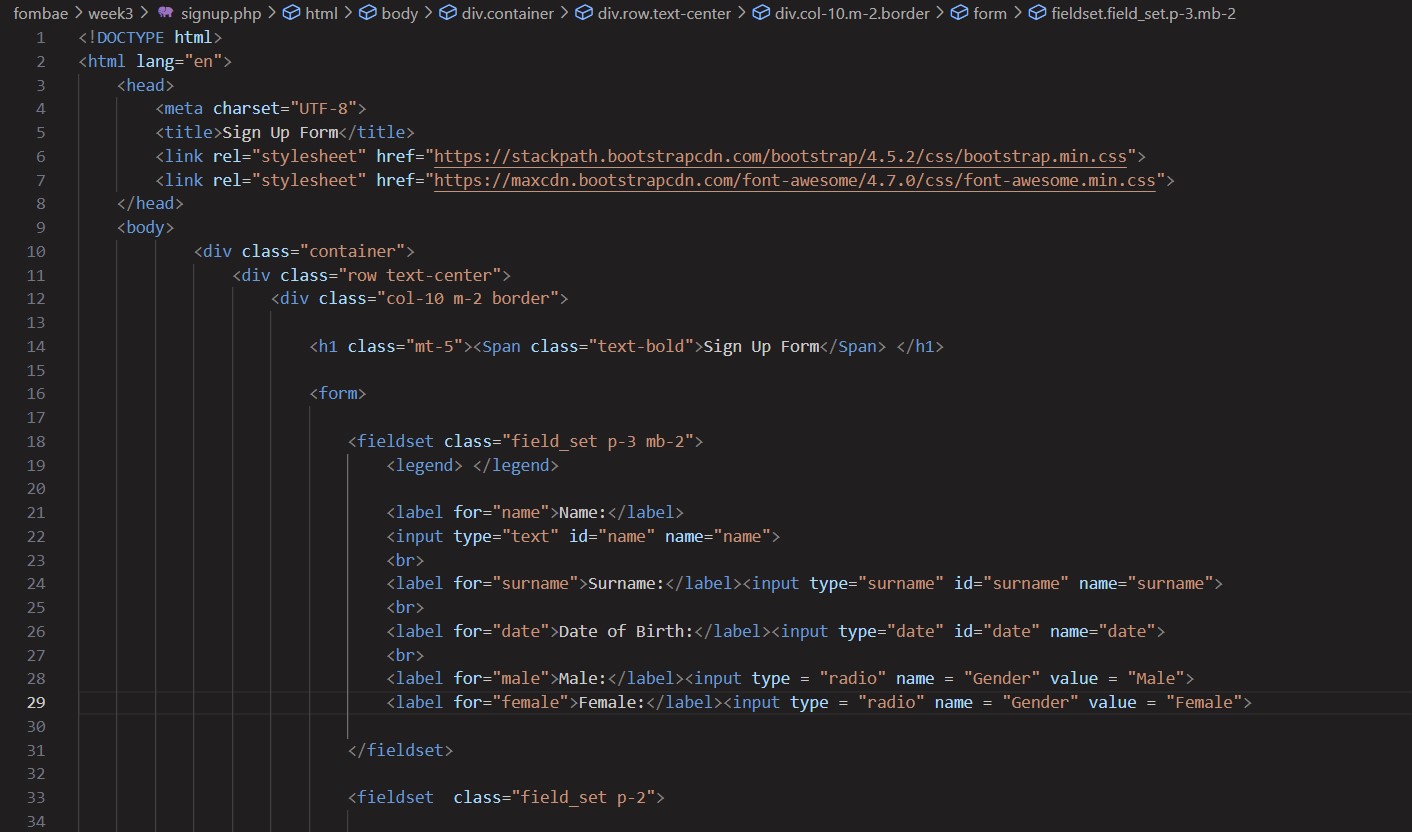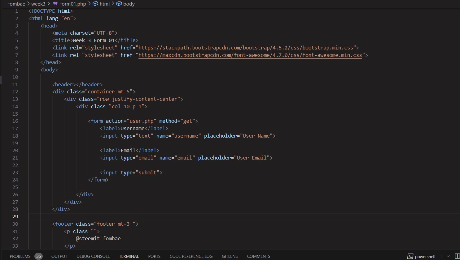 2• Create a form that accepts sign-up data, and send the username and email to a new page named user.php.