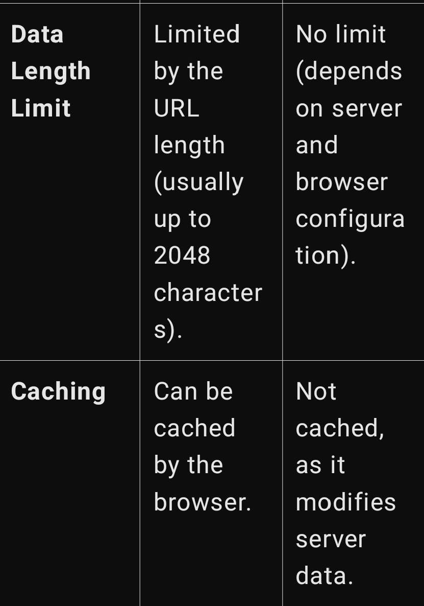Here’s a table highlighting the key differences between the GET and POST methods in HTTP: