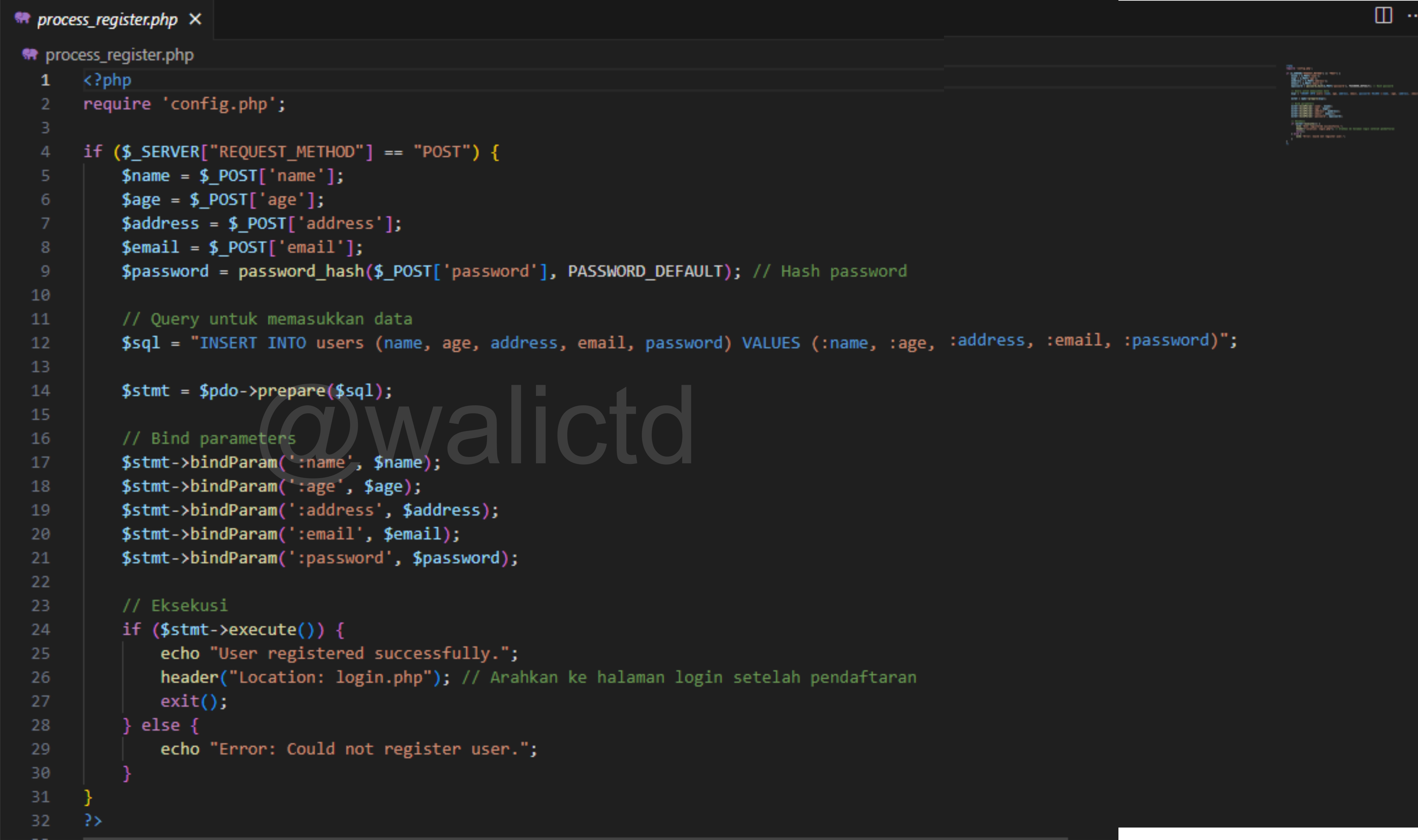 - Next, we create a file that functions to process the registration data and we name the file process_register.php.