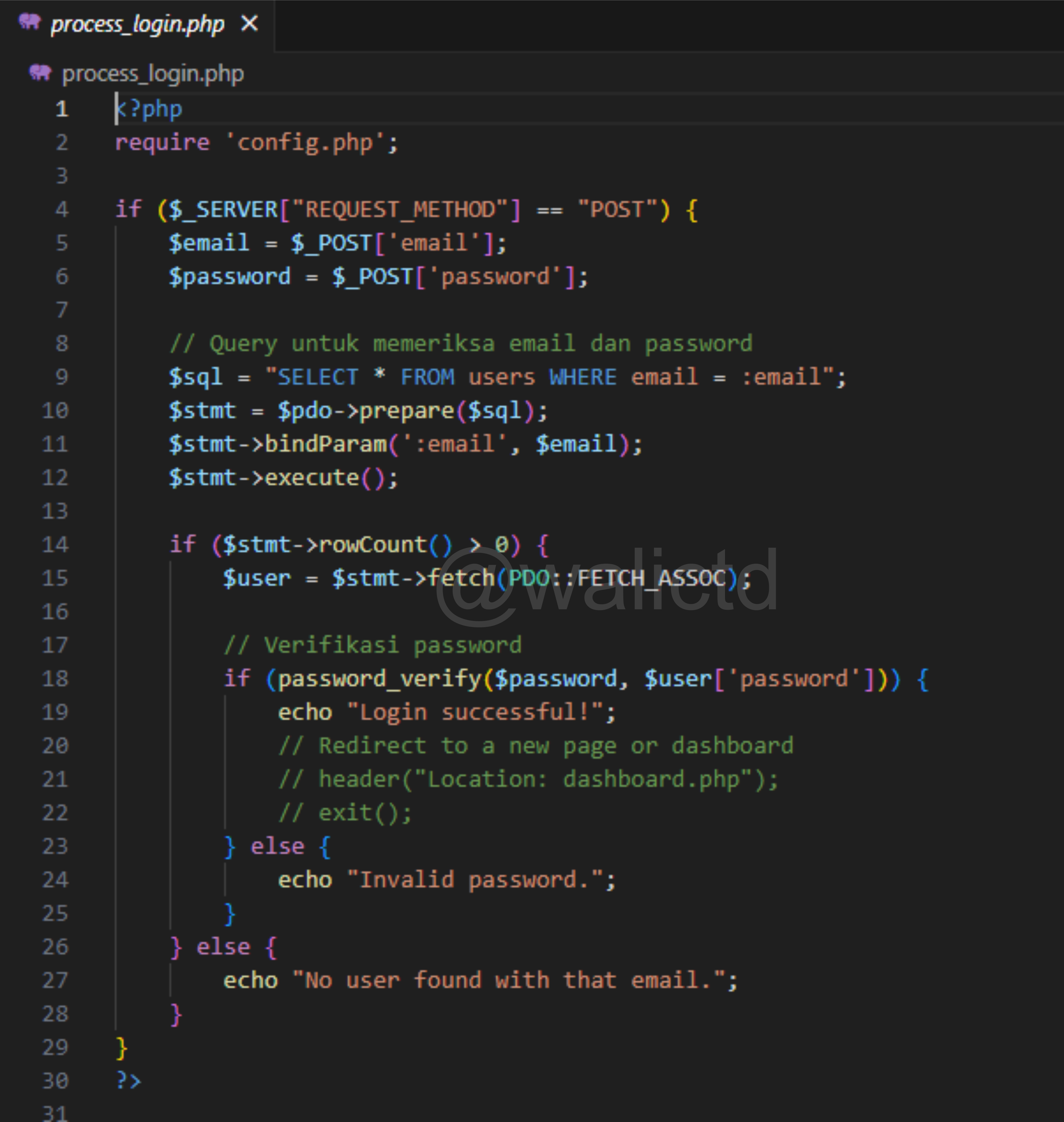 In every file there must be a process, so we have to create another file called “process_login.php” and I provide the following code: