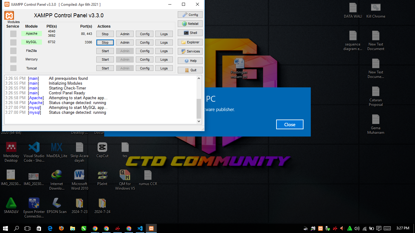 To run the php coding above, the next step is to turn on XAMPP, with my goal is to run the results on the web like Google Chrome or Mozilla or so on.
