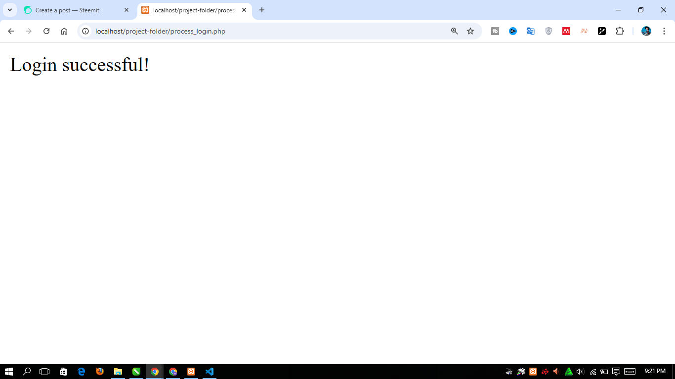 After successful login, there will be a display of “Login successful!”