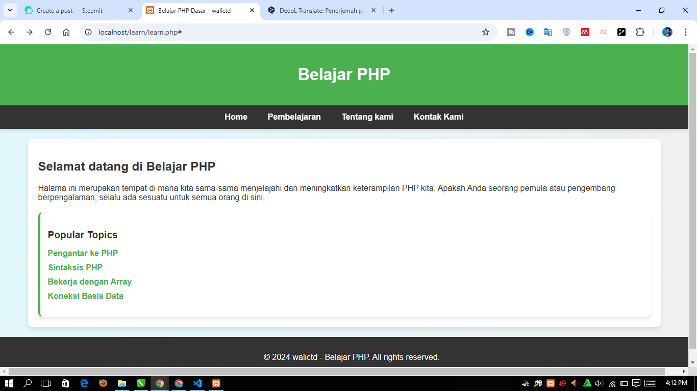 In this section I will make a more structured version and I like the more elegant appearance of the PHP learn.php page, of course, do not forget to utilize the include with the aim of including headers, navbars, sidebars, and footers. Hopefully my design can provide a more attractive appearance and friends all like it.