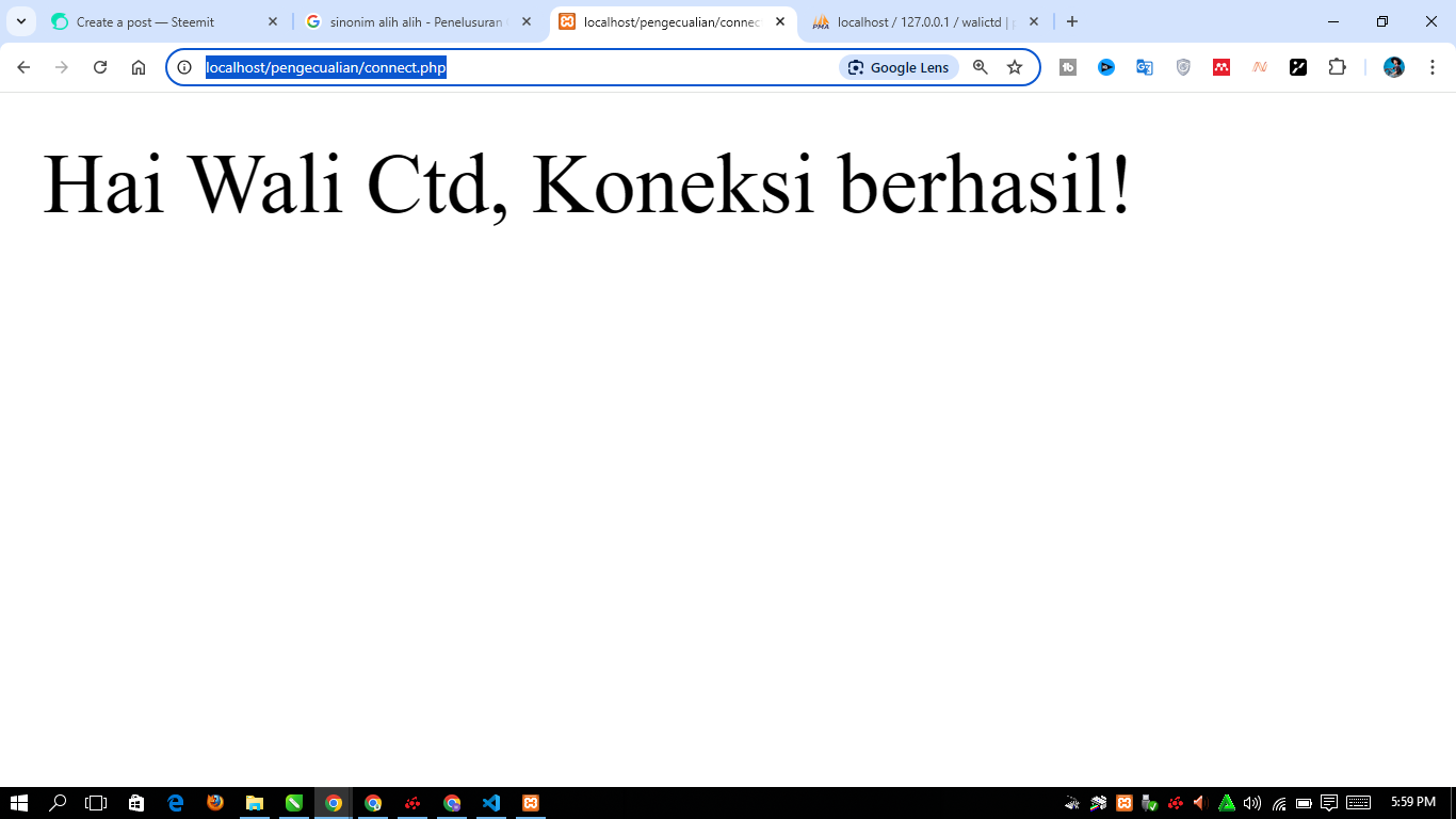 Next, we just need to start XAMPP, then run the program using CHROME. We simply type “http://localhost/learn/learn.php”, then it will look like this: