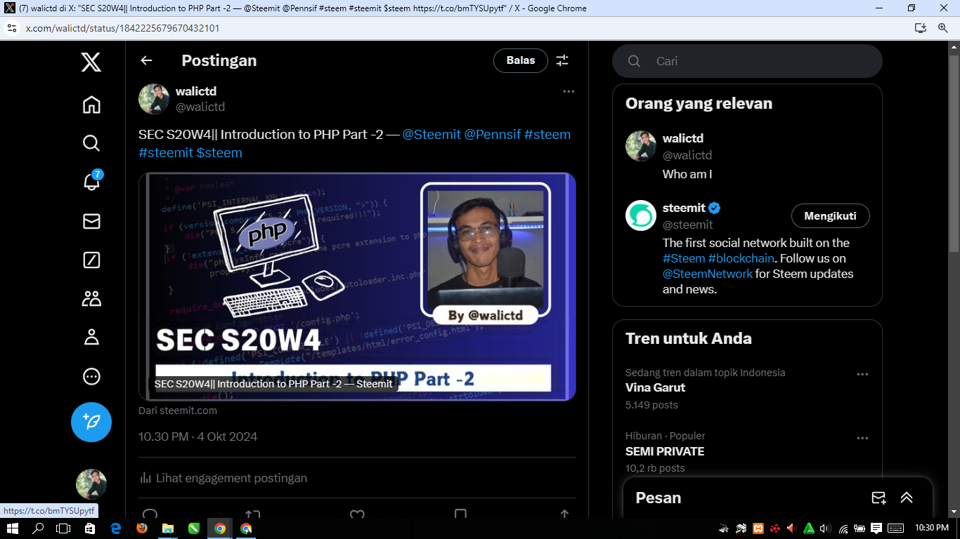 Hi friends, after reading around I am interested in participating in an amazing challenge this week. The challenge is titled: Introduction to PHP Part -2 by Mr. @kouba01 and Mr. @starrchris following the contest link: SEC S20W4|| Introduction to PHP Part -2