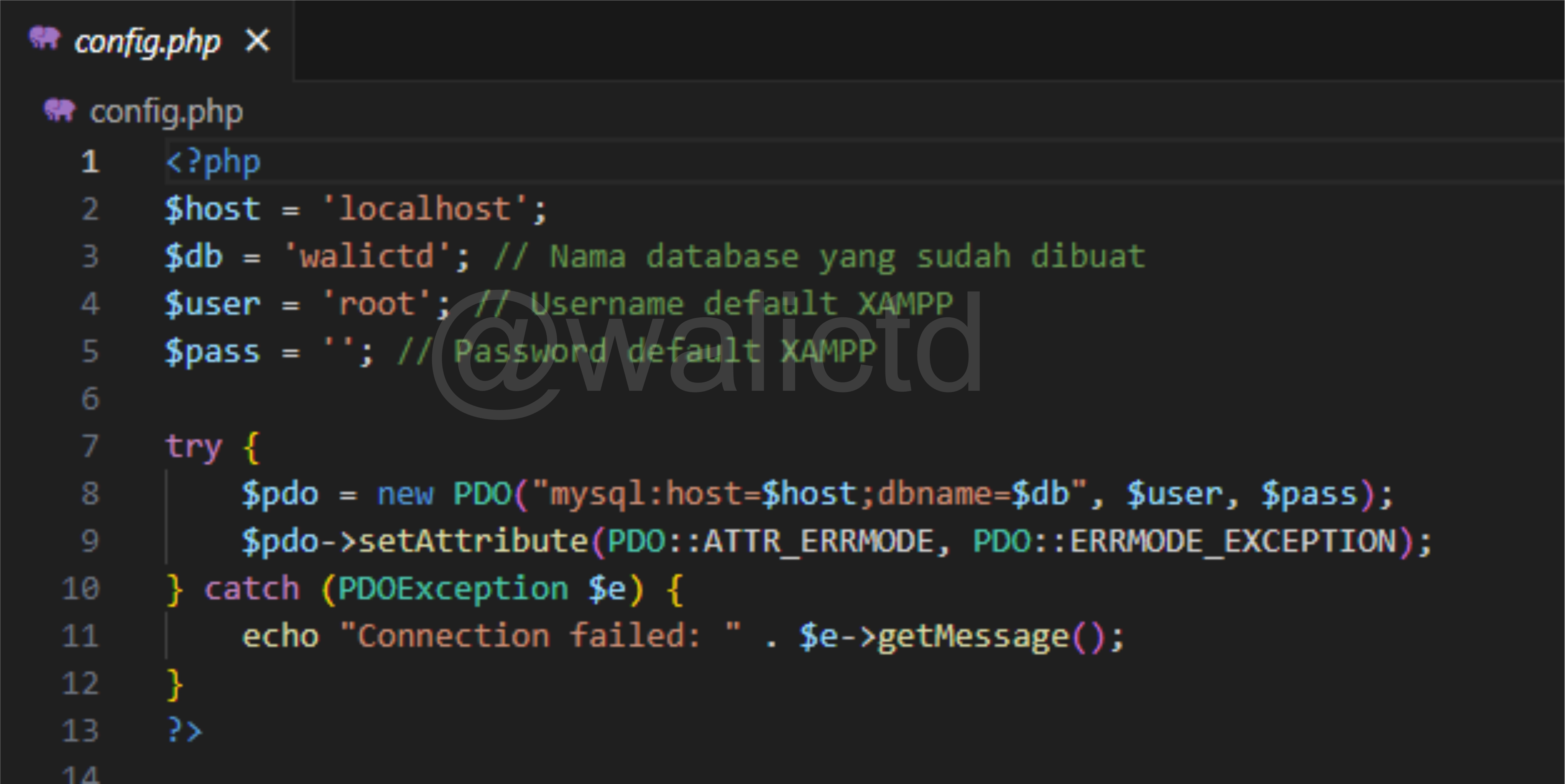 - Then we create a file that will connect between php and the database that we have created, we name the file config.php. Here's the code: