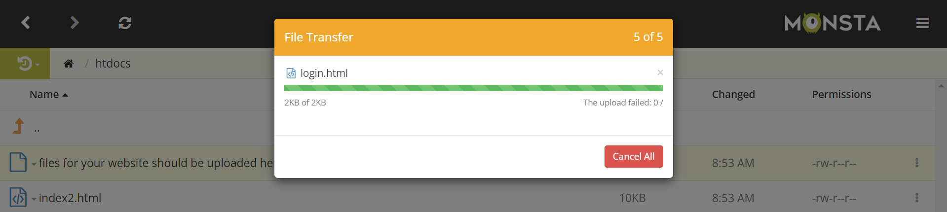 register.html, login.html, register.php, login.php and logout.php are being uploaded.