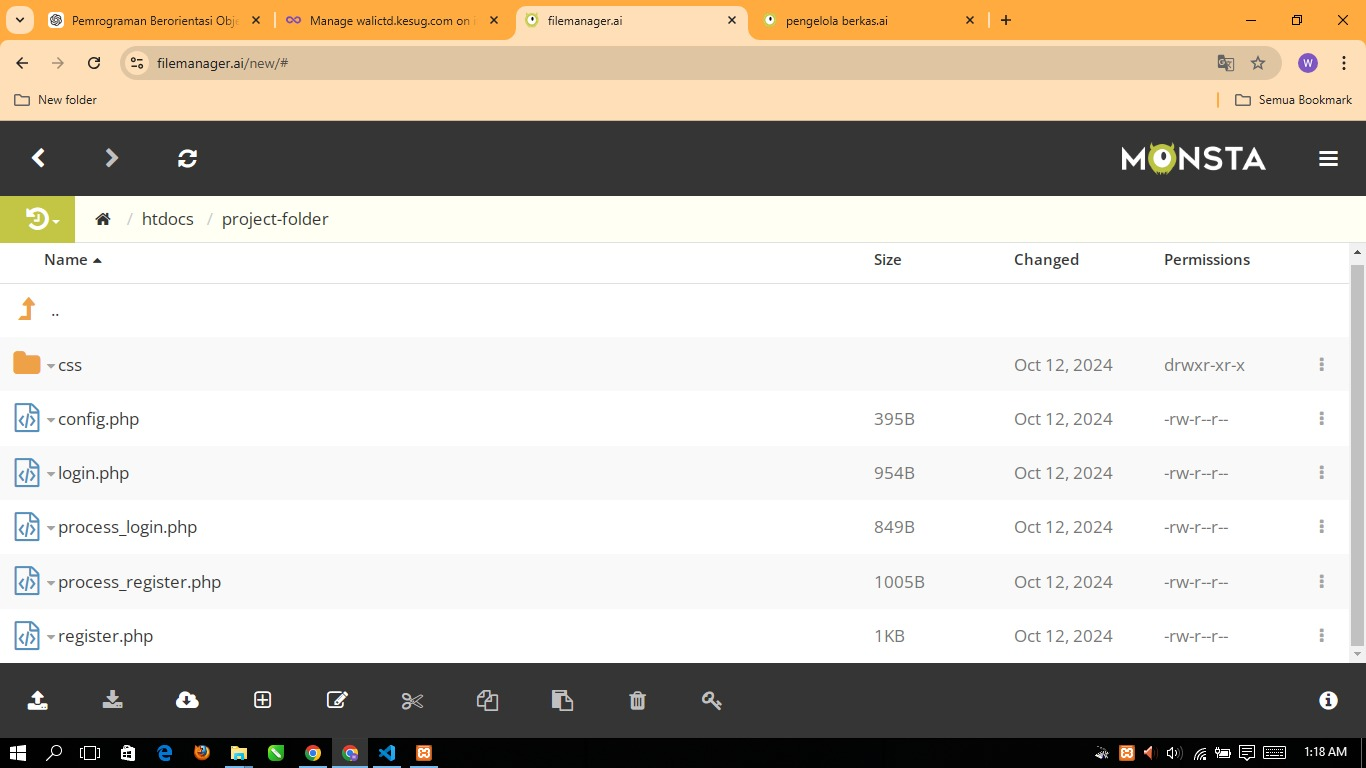 Next I visited the file manager to upload all the php and css files there. Then I also uploaded the database files.