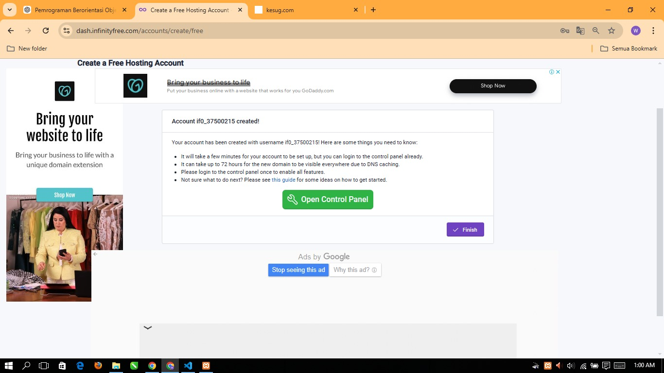 To host all the code that we have created, we have to buy the domain first, or visit a free domain. For this time I will host the page for free with Infinityfree.