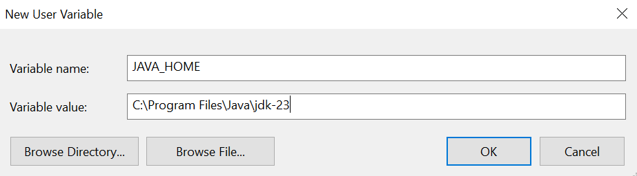 - Here we need to add the name and the value of the variable. The value of the variable is actually the path of the JDK file.