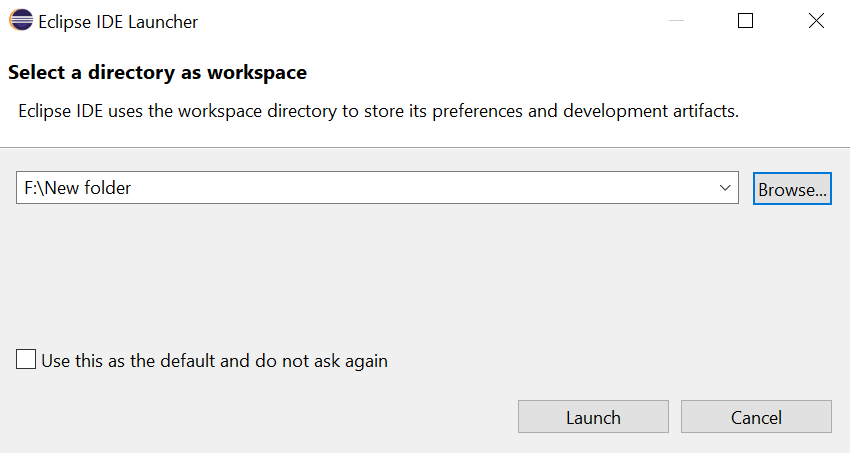 - Now we have to set the workspace folder where our work will be saved.